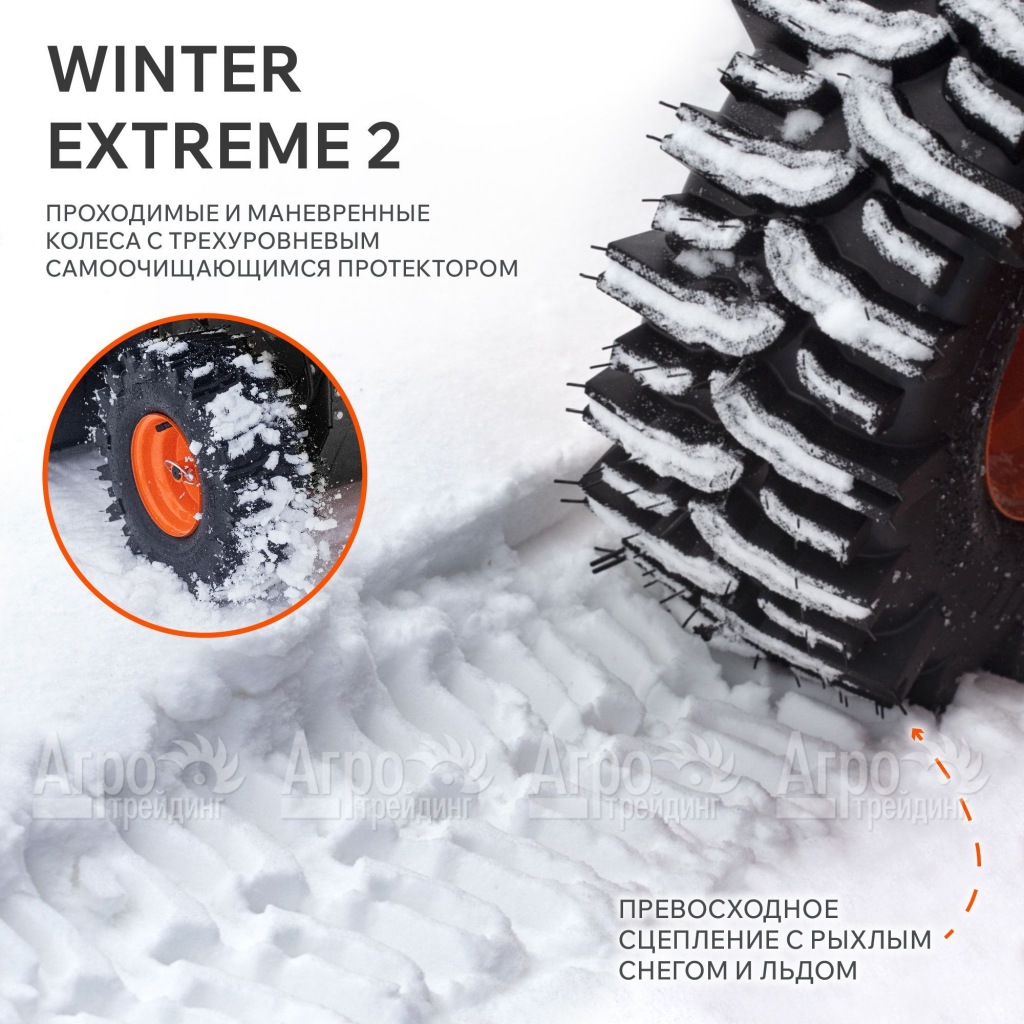 Еще одним преимуществом является функция регулирования направления выброса снега. Отличные сцепные качества и отменная маневренность на обледенелой поверхности обеспечиваются, благодаря использованию зимних покрышек. Оперативной и эффективной уборке территории способствует ковш внушительных размеров. Простоту заливки топлива гарантирует крупная горловина.